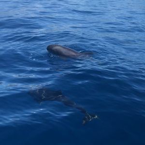 今回はイルカには会えないのかなと思っていると、ユメゴンドウという大変珍しいイルカの群れに会う事ができました!