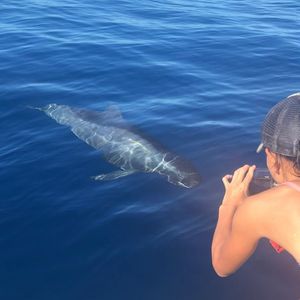 お天気がイマイチの中100頭近くのイルカに会えて幸せでした! 船酔いされてる方はおきのでしたので船が弱い方は酔い止めをしっかり飲んだ方が良いと思います。