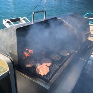 イルカもバッチリ見えて、BBQ(アメリカンなハンバーガー)も最高!シュノーケルでもたくさん魚が見えました。