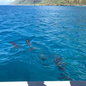 ウミガメもイルカもばっちり見ることができ、とくにイルカは、群れに出会えて、船からもシュノーケリングもどちらもイルカと楽しむことができました。船から、イルカ達が跳ねたり、イルカショーのように跳ね上がったりするところを見ることができて最高でした。