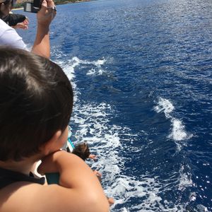 イルカはたくさんはみることができませんでしたが、スタッフの皆さんが明るく、楽しい方ばかりで楽しい時間が過ごせました。幼稚園の子供がシュノーケルを嫌がり船に残ろうとしましたが、スタッフのお姉さんが抱きかかえて海に連れて行ってくれました。シュノーケルはできなかったものの、波に揺られながら歌を歌って楽しませてくれて娘もとても楽しく過ごせました。家族全員を楽しませてくれようとしたスタッフさん達に感謝でいっぱいです。