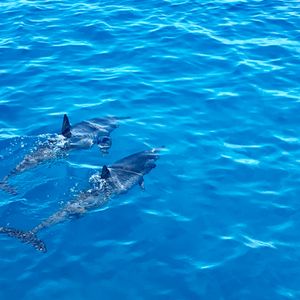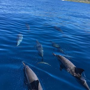 最初は慣れていないのため慌てたところもありましたが、最後はイルカ達が参加者みんなの周りを回ってくれ、一緒に泳いだり観察をしたりと、とにかく最高の時間でした!スタッフの方達も参加者がイルカを見られるように気遣いをしてくださって、感謝感謝です!とにかくオススメですが、泳げない方は船の上で見るしかないです。