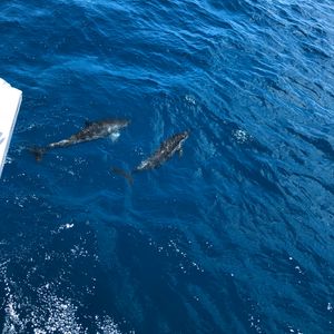 天気があまりよくない中の出航でしたが、いつもより遠くまで行ってくれたみたいで、沖に出るとイルカのジャンプも魚の群れもバッチリ見られました!