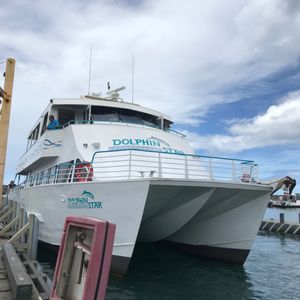 私たちはホテルから車で出発し、ワイアナエボートハーバーに早めに到着しましたが、「ドルフィンズ・アンド・ユー」の看板が見当たらず少し心配しました。しかし、指定された集合時間にちょうどその場所に「ドルフィンズ・アンド・ユー」と書かれたバスが駐車場に入ってきました。もし乗り物酔いしそうだと思ったら、必ずドラマミンを持参してください。クルーズ中に何人かが気分が悪くなりましたが、私はそれほど荒れているとは思いませんでした。私は「ドルフィンズ・アンド・ユー」のクルーズに出発する前にドラマミンを飲んで大丈夫でした(以前、マウイのモロキニでのシュノーケリングの旅行で気分が悪くなったことがありました)。日焼け止めは早めに、そして頻繁に塗ることをお勧めします…水の上では太陽がとても強いです。