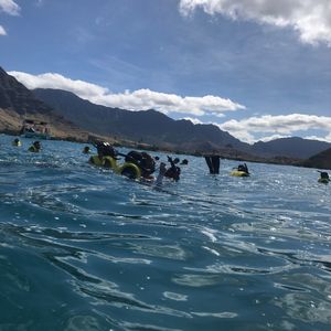 The staff and crew are very funny and entertaining! As we were heading out to the ocean, they peformed Polynesian dancing, and playing ukulele. They also performed traditional Hawaiian prayer for our safety. As we were getting closer, we could already see the pod of dolphins, af the signal from the crew members, we jumped to the water and started to swim with these beautiful dolphins!!! I never swam with dolphins in the open water before and this was really exciting!! There were lootsss of them!!