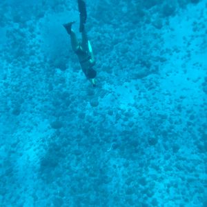 ここは、さっきのところよりは透明度があり、水深3~4メートル