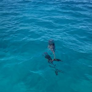 シュノーケルしながらイルカと一緒に