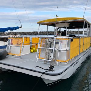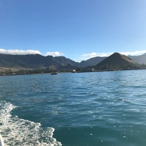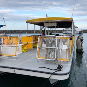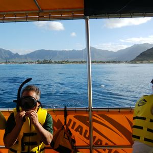 ホノルルは雨模様でしたが、ホノルルからは結構離れた場所なので天気は奇跡的に良好でした。しかし波がそこそこ高く、かなりの人が船酔いにあってました。一部の人は海にはいってプカプカ浮いてるだけで酔ってました。酔い止めは必須といっても過言ではありません。ABCストアでも売ってるので準備したほうがいいでしょう。