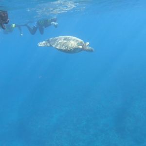 しかし!ですよ。そのイルカの群れを自分が実際に海に入って水の中で見られるだなんて、素晴らしい体験でした。海亀も見られました。めちゃくちゃ可愛かったし、感動です。72歳の母も一緒にシュノーケルしましたが、とても喜んでいました。船酔いを心配しましたが、酔い止めを飲まずに参加した私たちは全然大丈夫でした。しかし、1回目のイルカが来た時は、船の後ろの方にいた人たちはほとんど見られなかったです。とにかくガイドさんに付いてすぐに飛び込まないと、遅れて泳いでもなかなか追いつけるものではありません。なので、できれば船の前の方に座ることをお勧めします。