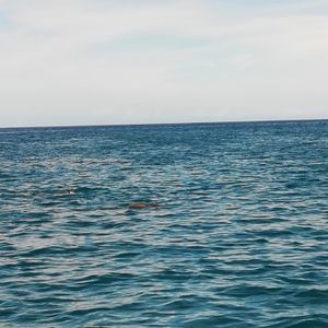 先頭から海を眺めてると、遠くの方でイルカがジャンプしているのが見えました。