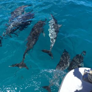 透明度の高い海でイルカの大群がゆっくりと泳いでら姿を見ることができました。息継ぎしてるカメを1メーターぐらいの距離で見れて危うくぶつかるところでした。船に乗ってる間も楽しませてもらいました。今回の旅行の一番の思い出になりました!