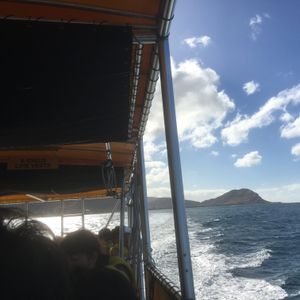 イルカが近くに寄ってきそうなタイミングが来たら突然「GO!!!!」と船から直接飛び込みます。深い海が苦手な私は最初の飛び込みは勇気がいりましたがすぐ慣れました。イルカと泳げるまで移動しては飛び込み、4回目で数頭のイルカが下のほうや横のほうで泳いでいるのが見れました!治安が悪いとされる西オアフの海も初めて行けてうれしかった。また参加したいです!