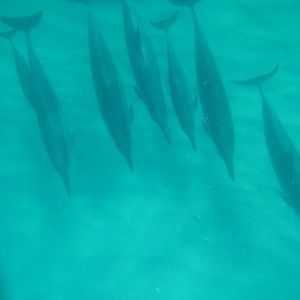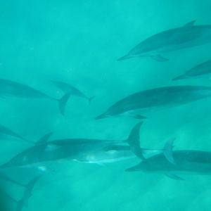 今まで色々なシュノーケリングのツアーに参加しましたが、こんな近くで、沢山のイルカを見れたのは初めてです。一回のダイブで、何十頭ものイルカと遭遇しました。