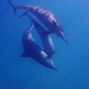 イルカのいる場所は日によって違うそうですが、私たちが参加した日は出航してすぐのところにいました。シュノーケリングの説明を聞き、いざ海へダイブ!周辺を泳ぎながらイルカを探します。スタッフの方がここにいるよー!と声かけをしてくれるのでその時に海中を覗くとイルカの群れが…!感動です。でも一瞬で横切ってしまうので写真を撮る方は連写かムービーがオススメです。