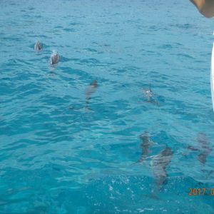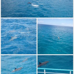 船上からは何度もイルカの群れを確認することができました。シュノーケルは2回船から降り、30頭ほどのイルカの群れをばっちり見ることができました!ただ、船には30人ぐらいのツアー客が結構つめつめで座り、全員海へ入ってイルカを見ていると、人のフィンが顔に当たったり、イルカの写真を撮りたいのに人が邪魔になったり、もう少し少人数のツアーの方が良かったなぁと思います。総合的にはガイドさんがとてもおもしろい方で、また、イルカの群れもウミガメもシュノーケルしながら見ることができたので満足です!