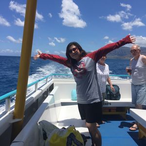 主人と参加しました。船酔いが気になる私でしたが、船も大きく、しかも揺れも少なく船内も快適に過ごせました。気になる方には船酔いどめのお薬も用意してくださいました。BBQランチは新鮮な野菜と船内スタッフが焼きたてのハンバーグを用意して下さりこちらも大満足!イルカも船内からよく見えました。久しぶりのシュノーケリングでしたが、たくさんのスタッフが常に目を配って頂けたので安心して過ごせました。日本人スタッフの方もいらっしゃいます。困った時にはいつでも頼れる雰囲気作りをしてくださっていたので、ほんとに安心。また、機会があれば参加したいと思いました。楽しい思い出をありがとう。