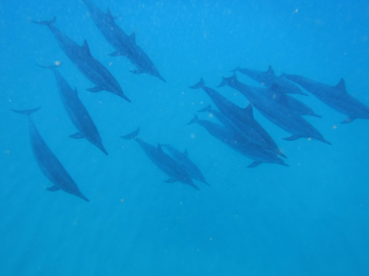 朝は早かったものの、イルカはたくさん泳いでいてSpinner dolphinだけあってくるくると飛び跳ねる姿を水中から間近で見ることができました。ウミガメもゆうゆうと泳ぐ姿を数匹見ることができました。お客さんが計11名と少数だったようですが、スタッフのおかげで、水中のみならず船上でも楽しめました。