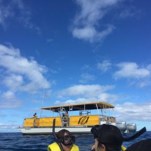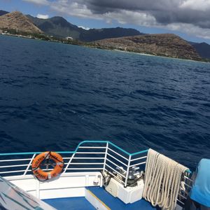 二つ目が、ワイキキからかなり離れたワイアナエボートハーバーまでバス行って船に乗り、そこからワイキキ方面へ折り返してポイントに行き、終わったら再度ワイアナエボートハーバーに戻り、そこからバスでワイキキに戻るという点です。バス移動が片道1時間弱、船のポイント移動が片道20分ぐらいはかかった気がしますので、旅行中はお金より時間が大事という考えの方は、ワイキキすぐそばにあるアラワイボートハーバー出発のツアーを探したほうが良いかと思います。