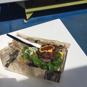お好きな具を沢山入れたハンバーガーを船上で、綺麗な景色を眺めながら、大口をあけて食べる、っていう