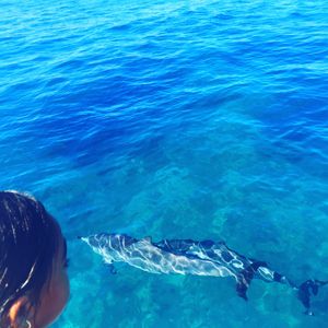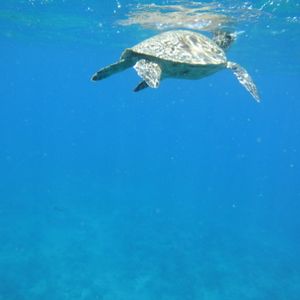 海の中はとても綺麗で、野生のイルカと泳ぐことができました。ウミガメも真下を泳いでいて、とても感動しました。
