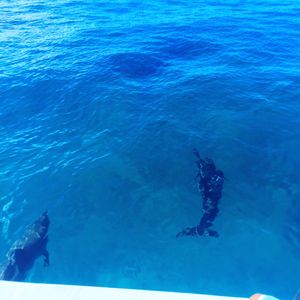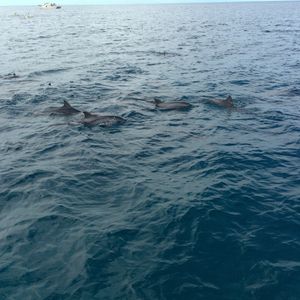 港に到着後船で出発します。私たちは運良くポイントが近く10分ほどで到着。船上ではクルーの皆さんが常にイルカを探している状態。いつ海にダイブしてもいいような格好で待機しています。クルーのGo!サインで一斉に海にダイブしていきイルカの大群を見ることができました。一緒に泳ぐまでとはいきませんがしっかり見られました。中には見ることができなかった人も数名いましたが、その人のためにクルーは必死で探し続けてくれました。