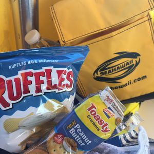 泳ぐ前に無事を祈る歌を歌ってお花をみんなで投げたり、クルーの方の歌やハワイアンダンスも良かったし、船の上で食べたハンバーガーもチップスも美味しくて、チップスは帰りに空港で見つけて、お土産に買って帰りました。
