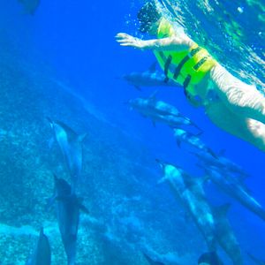 泳ぐことすら苦手なわたしの初めてのドルフィンスイムでしたが、シュノーケルとフィンのおかげでとても楽しく泳ぐことができました!スタッフの方もみんな明るく楽しく素敵でしたし、イルカも本当にたくさんいて楽しかったです!泳ぐ時間はわりと短かく一回しか入れなかったので次はたくさん泳げるツアーに参加したいと思います。