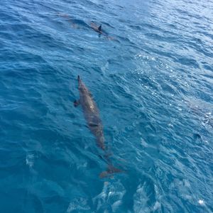 いよいよ船に乗り、イルカがいるポイントまでクルーズをします。スタッフの方4名いたのですが、皆さんテンションが高く英語で色々と話しかけてくれる為、終始楽しい雰囲気でした。そしていよいよイルカを発見し、シュノーケルをつけて海にダイブします!そしてイルカの近くまでみんなで泳いでいきました。するとそこにはたくさんのイルカたちが私のすぐ下を泳いでいました!!
