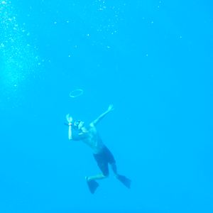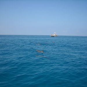 想像以上にハードで、船でずっと走りイルカを見つけたら、次々に飛び込み追いかけ、また船に戻るというのを何度も繰り返すため、ある程度の体力が必要です。