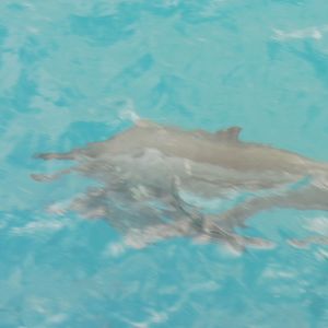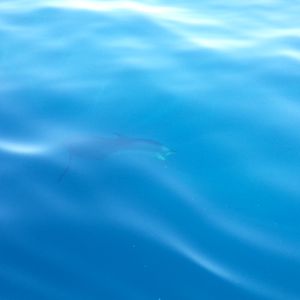 1回目のダイブで足元4-5m下(水の中なので距離はよく分かりませんが)をスッと通り過ぎる所を。2回目で3-4m先の目の前を一瞬で通り過ぎて行き、3回目で「今からそっち行くよ!」と船上のスタッフに声を掛けられ、ようやく4-5m下にいるイルカ3頭の真上を泳いでついて行けました。10秒程で見えなくなってしまいましたが。