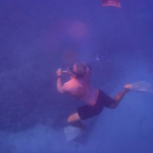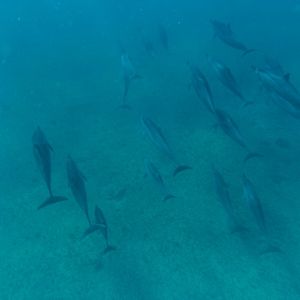 この日はハリケーンが近づいて海が少し荒れていたので見れるか心配でしたが、ガイドさんの指示に従って頑張って泳ぐと海底にイルカの群が見れました!!