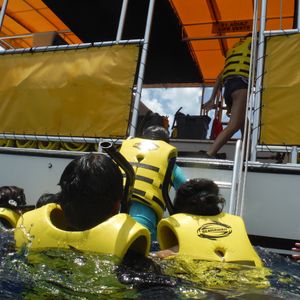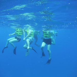 最初は深い海にいきなり船から飛び込んでシュノーケルできるか不安でしたが、スタッフの方の今!の合図で全員が次々に飛び込んで不安に感じる暇もありませんでした。スタッフの方が一緒に海に入って海面から見えるイルカの動きをよんで誘導してくれるのですが野生のイルカなのでとにかく必死でスタッフについて泳いでいかないといけないので体力勝負でした。60歳の母はなかなかついていけず見れていなかったのですがそれを伝えると一所懸命になって誘導してくれ、最後にはたくさんの群れと泳ぐことができ大感激でした!