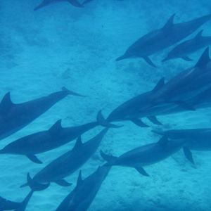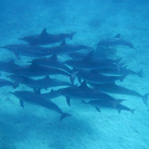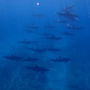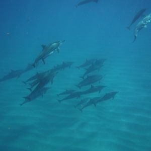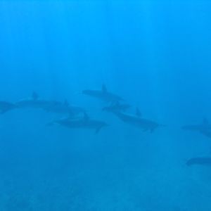 何頭ものイルカが自分たちの下を群れになって泳いでゆく姿を見ることができました!海の中ではイルカの鳴き声も聞くことが出来て本当に感動しました(^^)