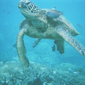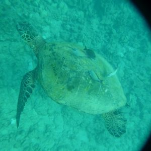 別のポイントでのシュノーケリングではウミガメにも遭遇できました。