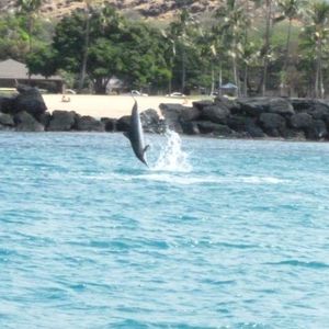 初めてのハワイでの記念にと思い二十歳の娘と参加させて頂きました。西オアフのハーバーから船で沖へ出て、イルカの姿が見えたら海へ飛び込む準備開始です。GO!の掛け声で順番に海に飛び込むので、最初は怖かったけれど、すぐに恐怖心は消えました。イルカにも遭遇出来たし、海亀も襲われるほど接近してきたので、感動と興奮でした。スタッフの皆さんもとても親切だし、目の悪い方には度つき水中メガネを貸して貰えます。イルカは朝早い時間は浜に近づき、時間と共に沖へ移動するそうなので、しっかり姿を見たいなら早朝便がお勧めですよ。