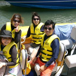そんなこと、すっかり忘れてしまいました!他の方のカキコミでは「ボートは猛スピードで。。。」と書いてあったので、覚悟して(!)参加しましたが、私個人的には、それほどでもないと思います。時々、ボートがバウンドしてフワ~と浮くときがありますが、気持ちよかったですよ(そう思うのは、私だけかな?)