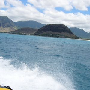 ツアーは朝から2回目の回に参加しました、ゴールデンウィークに入っていたので気候も良くて海の上でもまったく寒くなく海の水も冷たく感じませんでいた。ワイキキのホテル群の街から車でおよそ1時間ぐらい西の方角へ走っていって、港に到着して、そこでボートへ乗り換えます。ボートに乗る前に、足ひれとマスクとシュノーケルを自分のサイズにあわせてもらって、ボートに乗って出発します。