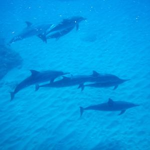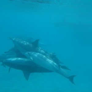 肝心のイルカにもたくさん遭遇できました。スタッフの話によると、昼間は寝ていることが多いそうで群れを成してサメ等の攻撃から身を守っているそうです。その為、ゆっくりのんびりとした動きで、写真もたくさん撮れました。