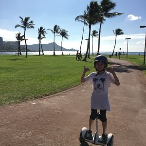 娘がどうしてもハワイでセグウェイに乗りたいと言っていたのですが体重制限(下限)で断念。。。しかし諦めずに探したところ、ナインボットミニのツアーを見つけて即申し込みをしました。結果、両手が自由に使えるので撮影も自由にできますし、インストラクターの方が懇切丁寧に指導して下さいますので、怖がりの娘もすぐに自在に動かせるようになりました。ハワイの風を感じながら最高の時間を過ごせました。次回またお願いしたいと思います。