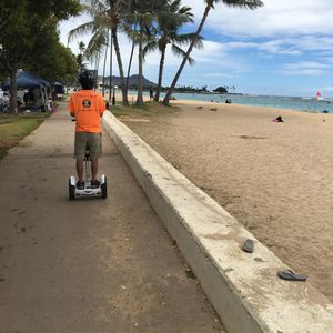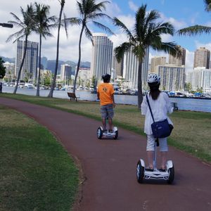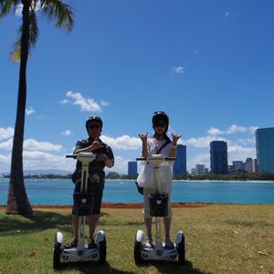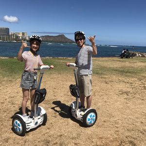 エアーウィールは、体重移動とハンドル操作だけで簡単にすぐに乗れるようになります。サンセット前のビーチ沿いを風を切りながら走るのはめっちゃ最高でした。スタッフの方がとても親切で、段差や気をつけた方が良い箇所がある時は、その都度声かけをしてくれるし、写真や動画も撮ってくれるからちゃんと思い出も残せるし、自由時間は公園の中を思いっきり走り回れます。次にハワイに行く時もまた参加したいです。