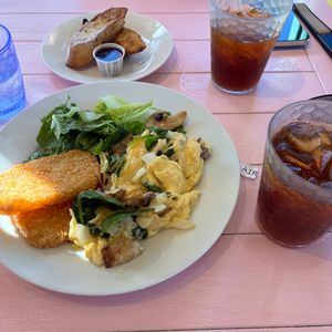 ダイヤモンドヘッドの日の出は最高でした、疲れも忘れるぐらいの絶景!下山後のKCCファーマーズマーケットで軽く朝ごはん!私達はKCCでホテル送迎をキャンセルして行きたかったカフェ モーリーズへ、いい記念になりました。