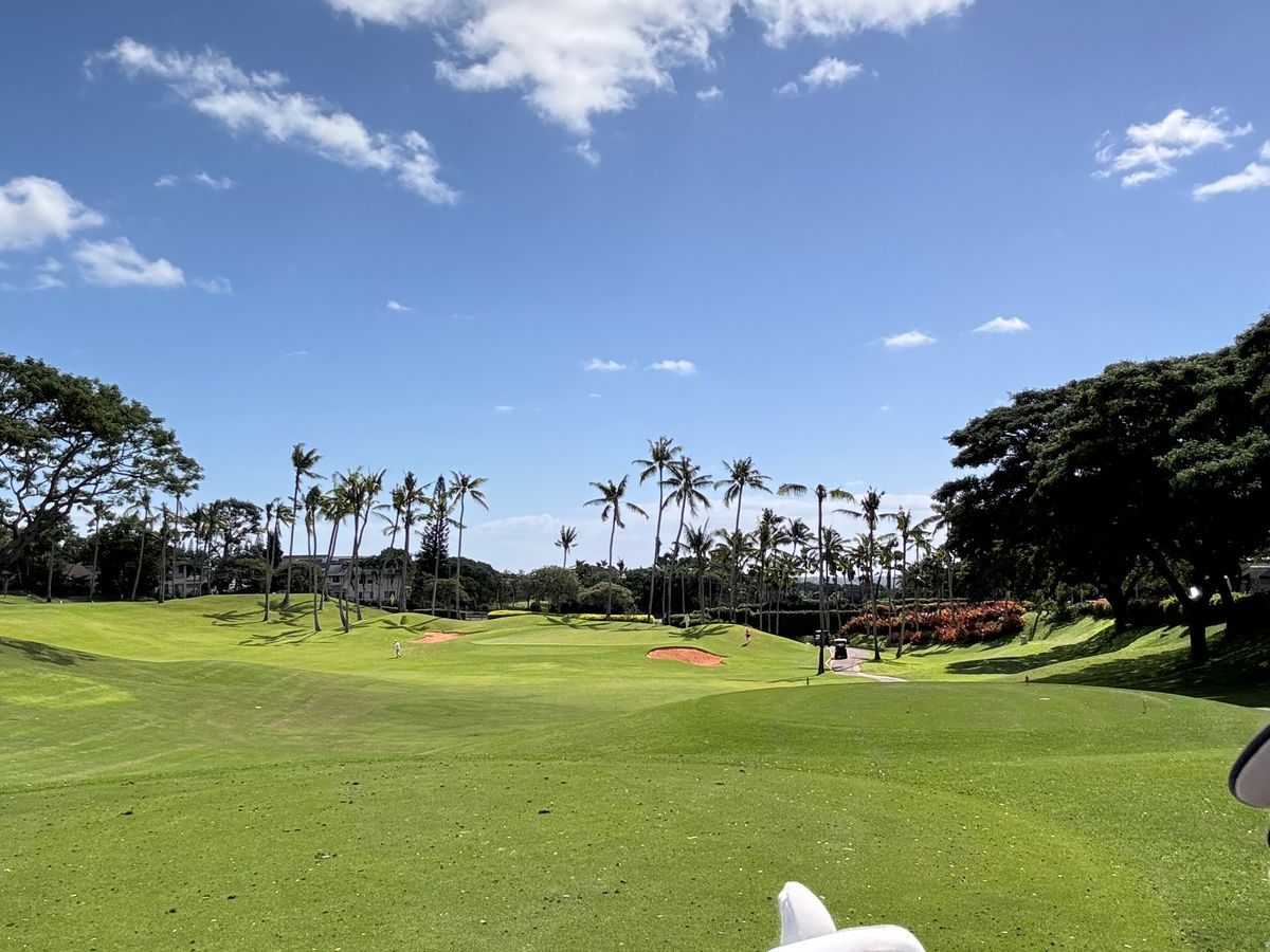 ゴルフ場は広くて綺麗で、カートも乗り入れ可。たくさんのヤシの木の下でプレイすることも出来て「ハワイゴルフ」を存分に感じることが出来ました。