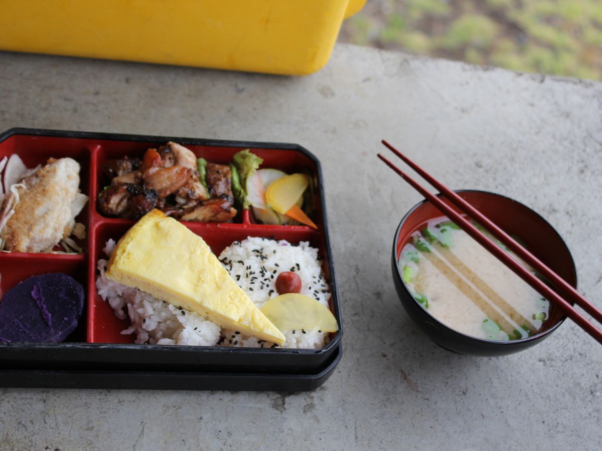 オニヅカセンターでいただいた「アメリカ人が作ったジャパニーズ弁当」(山本:話)もとてもおいしかった! ほかのツアーの方たちがインスタントで作っている「お味噌汁」が手作りだったのも嬉しかったです。
