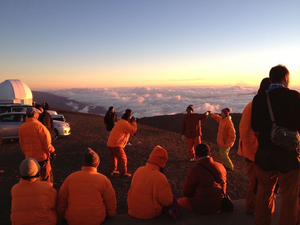 防寒着(上着、ズボン、手袋、帽子)を貸してくれるのですが、自分でもある程度防寒していってよかったです。お天気がよかったのでそれほど寒くないという話でしたが、地上温度と比べるとかなり寒かったです。サンライズかサンセットで悩んだのですが、日程的に満月から少しかけはじめた日だったのでサンセットで正解だったようです。サンライズにしていたら、月がなかなか沈まないので星が見えにくかったらしいです。マウナロアもきれいに見え、雲海、マウナケアの影、夕日、星空パーフェクトでした。ガイドの今野さんの星の説明はとてもわかりやすかったです。富士山よりも高い山に登ることができてよい思い出になりました。ありがとうございます。