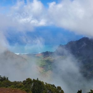今回、前半は雨模様でカララウ展望台からナパリコーストが見れなさそうだったなので、途中のロッジで30分時間をずらして再チャレンジしたら雲の切れ間からナパリコーストが見ることができました。