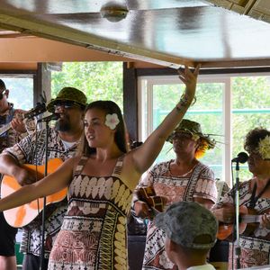 シダの洞窟へ向かう船で、フラダンスやハワイアンミュージックがあり楽しめました。