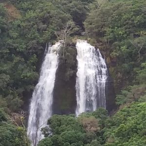 とにかく素晴らしかったです。陸からは行けないナパリコースの海岸線、ワイメア渓谷を上空から観光でき素敵な思い出になりました。パイロット席の隣には外人のご夫婦と、後の席は私達は三人の計5名の搭乗でした。乗り物酔いもせず、揺れも少なかったです。朝8時のフライトでしたが滝に虹がかかり、滝に陽がさして50分があっという間に終わりました。送迎もポイプまでしていただきました。カウアイ島観光される方には是非オススメです。
