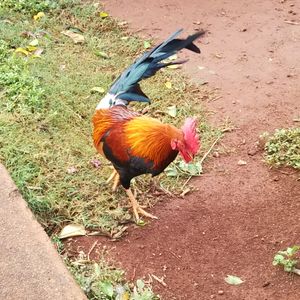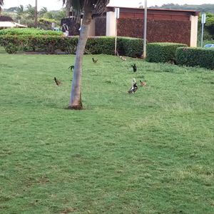 オパエカア滝は、道沿いの駐車場に停め展望台から遠望します。2筋3筋の流れが見える美しい滝でしたが、むしろ駐車場にいた夥しい数の鶏の方が印象に残りました。