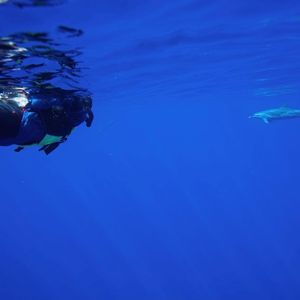 どのくらいの確率でイルカと逢えるのか不安でしたが、最初のダイブからイルカと泳ぐ事ができ感動しました!!!他にも亀などとも泳ぐ事もできたり、専属のカメラマンさんがツアー中の写真をたくさん取ってくださっているので追加料金でデータをもらう事もできるのがよかったです。