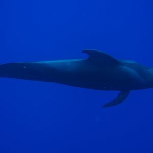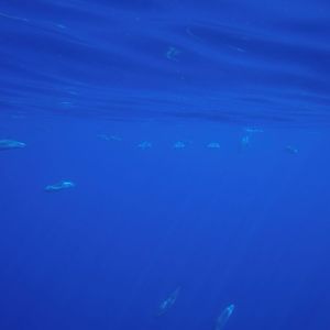 はじめに飛び込んだスポットではイルカと遭遇ができなかった…が、感動はそこにあった。水深1kmに対し上空から差し込む太陽の光で見せる海中のディープブルー。青い!青い!青い!